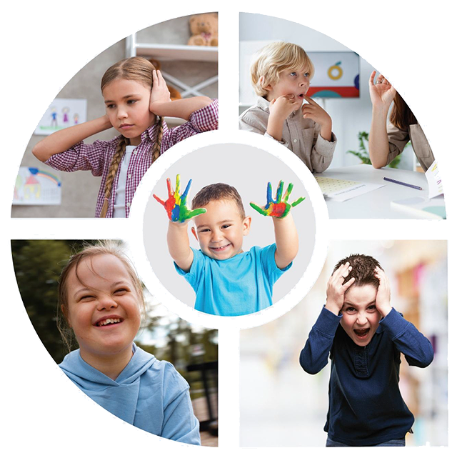 والمساعدة للأطفال الذين يعانون من التأخر اللغوي، ضعف السمع, متلازمة داون، وفرط الحركة وتشتت الانتباه.